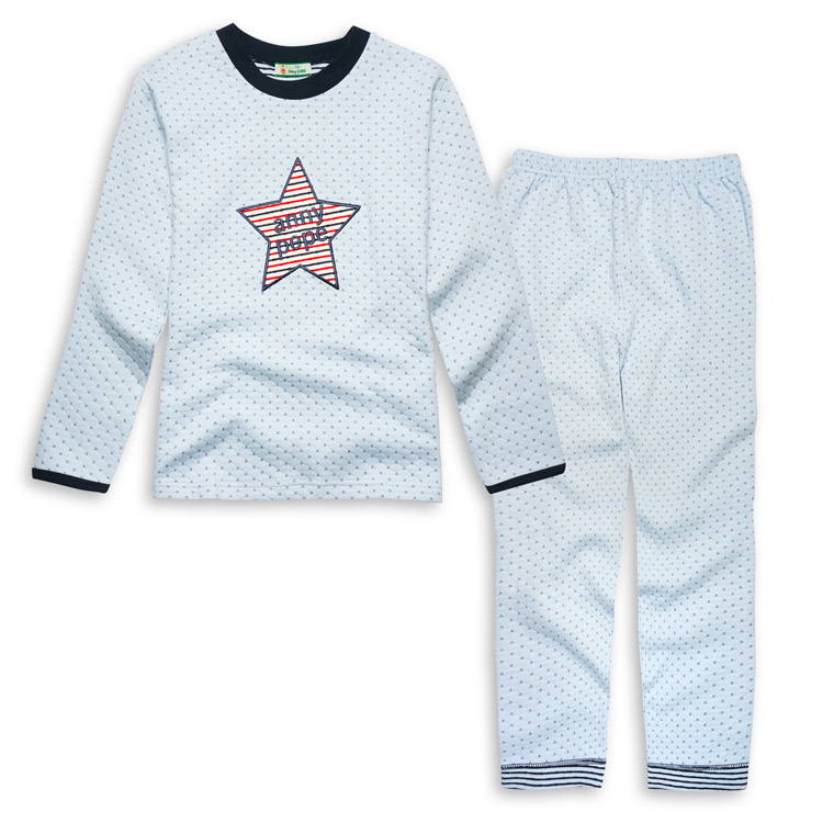 有機棉 雪花菱格紋 長袖厚居家服-水藍110-130