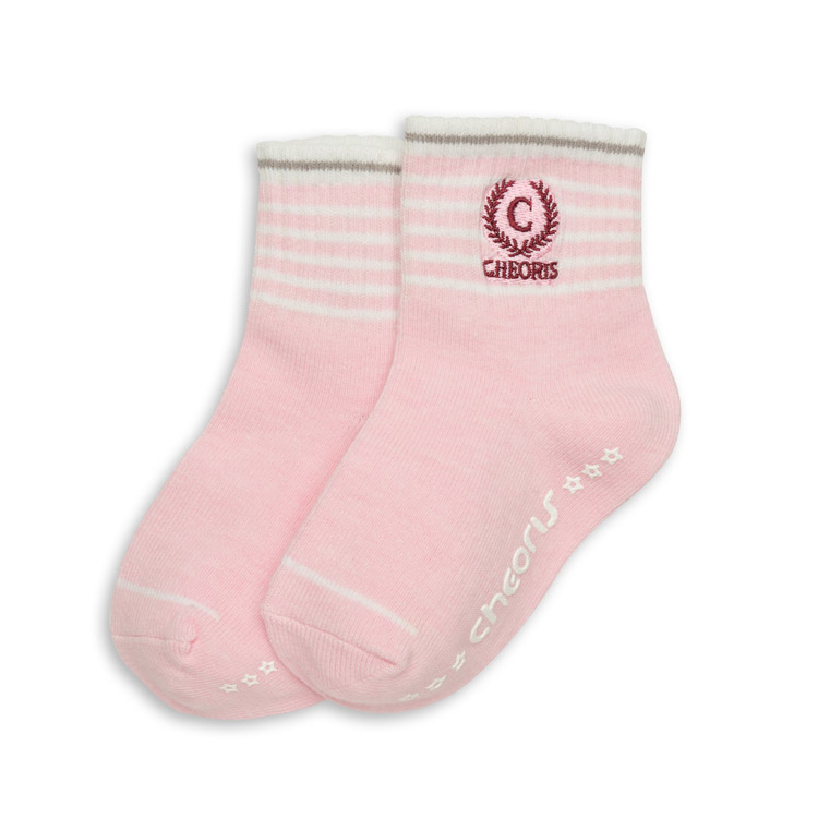 精梳棉 刺繡條紋短襪-粉紅13/17/19/23