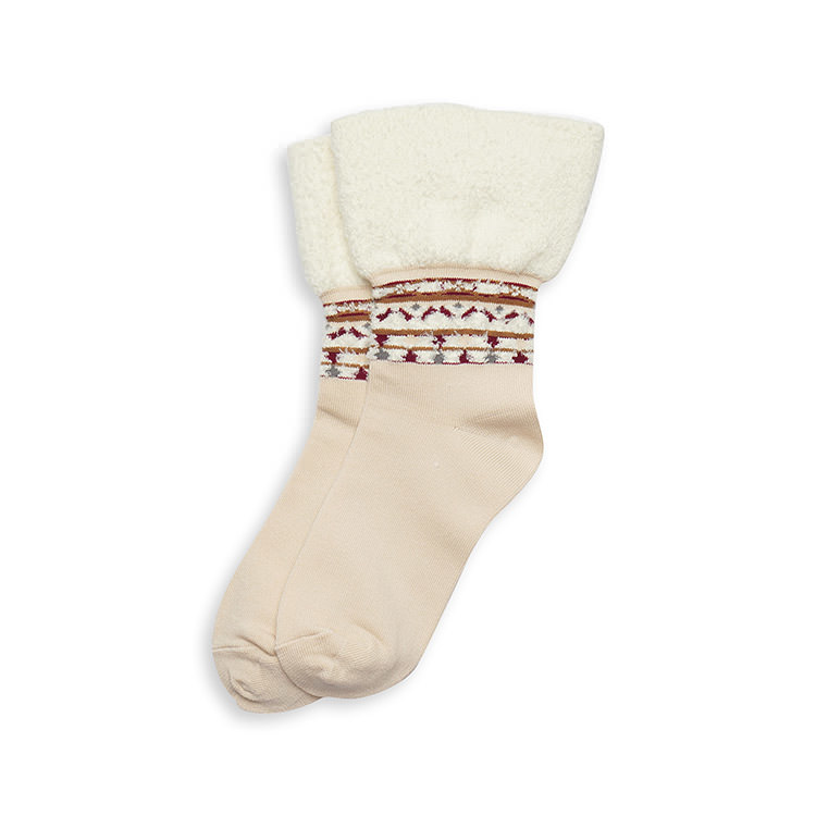 精梳棉 毛茸可反摺短襪-卡其17/19/23/25