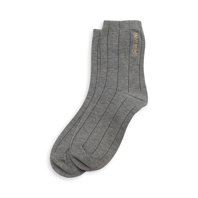 精梳棉 AP直條刺繡短襪-灰23/25